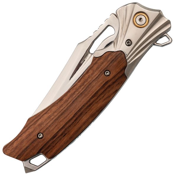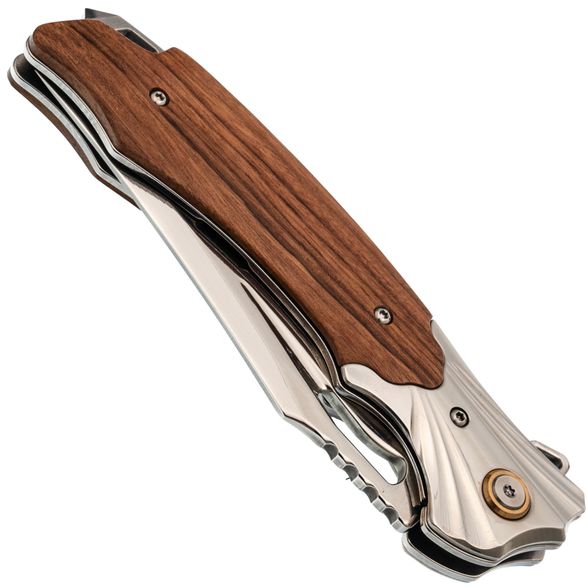 - Рукоять из стали и древесины - комбинация прочности стали с натуральной теплотой дерева. Это сочетание не только эстетично, но и приятно ощущается в руке, обеспечивая комфорт при длительном использовании.