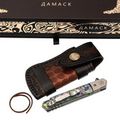 - Клинок из многослойного дамаска обеспечивает высокую прочность, стойкость к износу и визуальную привлекательность благодаря характерному узору стали.