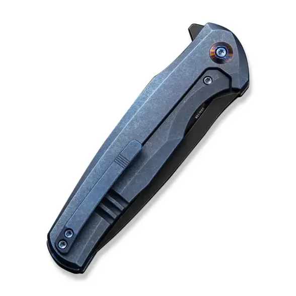 Дополнительные особенности WEKNIFE 601X включают темлячное отверстие и цельнофрезерованную титановую клипсу, обеспечивающую надежное крепление и стильный внешний вид.