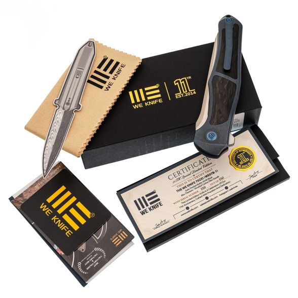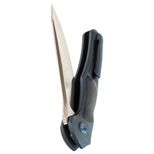 Модель WE Knife 702XL WE07B-1 - это редкий пример того, как крупный складной нож может быть одновременно изящным и функциональным. Выпущенный ограниченным тиражом к 11-летию бренда (всего 150 штук), он сочетает строгую утилитарность с премиальным подходом к материалам и сборке. Уникальное синее анодирование титана и хаотичный черный карбон придают ножу яркий, но не вычурный характер, подходящий как для коллекции, так и для повседневного применения.