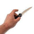 - Клинок - сталь Bohler M390: высокая стойкость к износу и отличная удерживаемость режущей кромки