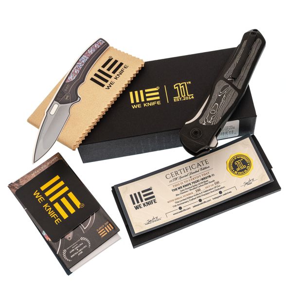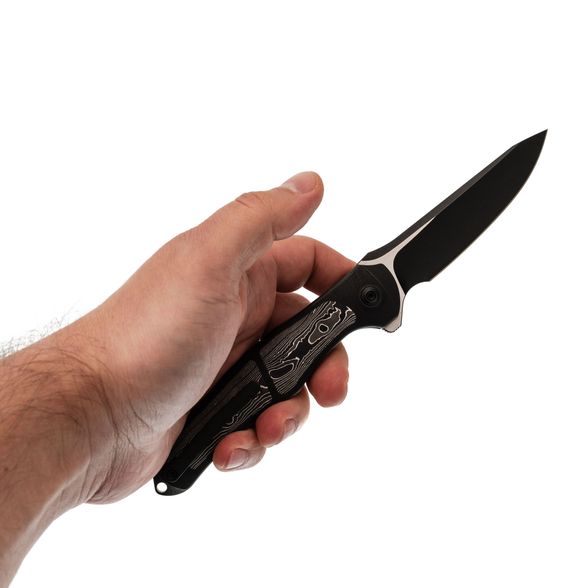 WE Knife 702XL WE07B-2 в черном анодировании и с уникальными вставками из черно-белого карбона с алюминиевой стружкой воплощает идею ограниченного выпуска в 150 экземпляров. Этот нож — практичный и стильный инструмент с акцентом на строгий дизайн и высокую функциональность.