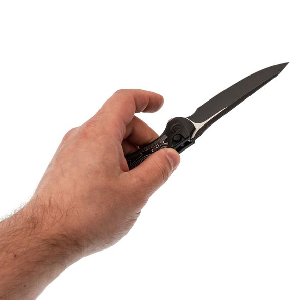- Рукоять — титан с черным анодированием: прочный, лёгкий и невосприимчив к агрессивной среде
