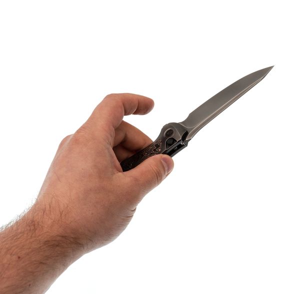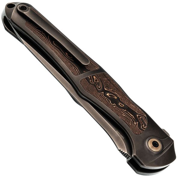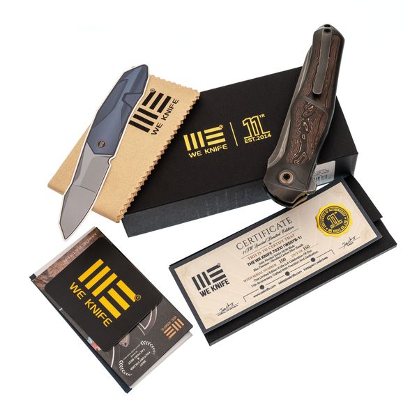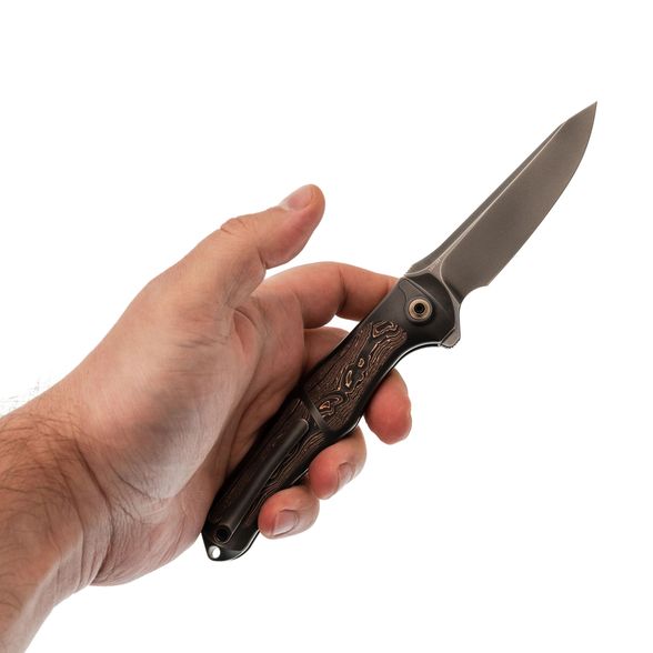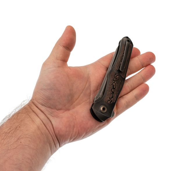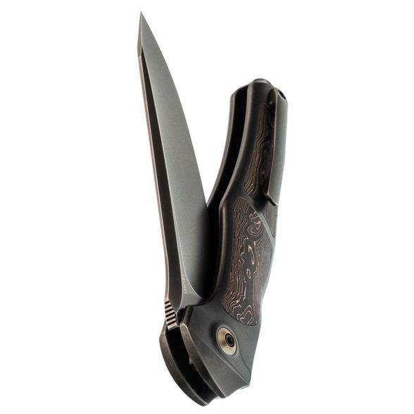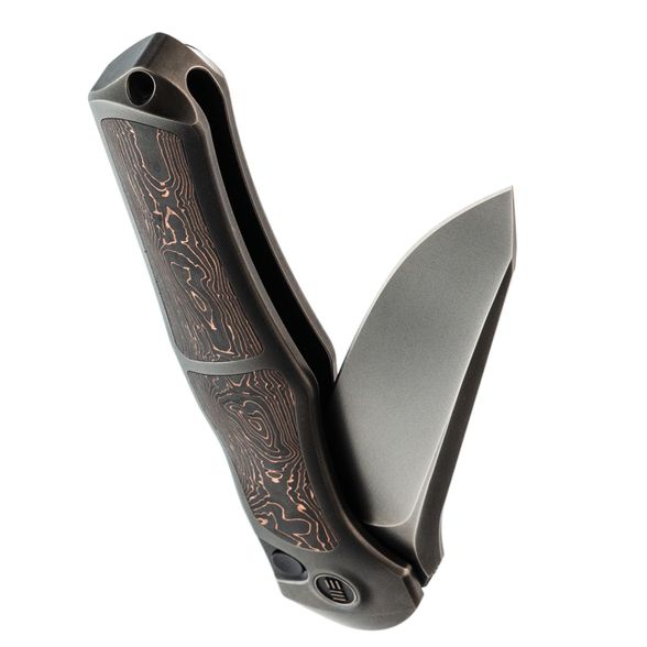 WE Knife 702XL с фирменной тёмно-серой полировкой и акцентами из карбона с медной стружкой представляет гармоничное сочетание современного дизайна и утилитарной сути. Ограниченный выпуск делает модель особенно привлекательной для ценителей уникального инструмента.