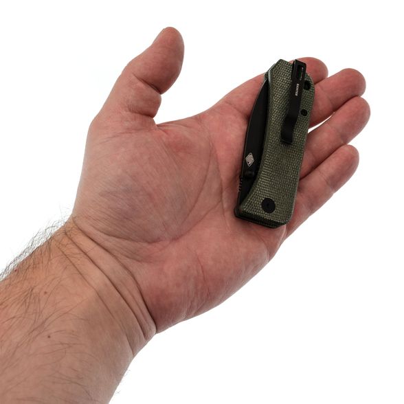 Рукоять, выполненная из микарты, придает ножу уникальный характер и обеспечивает комфортное и надежное удержание. Микарта - это прочный полимерный материал, который стал популярным среди производителей ножей благодаря своей долговечности и неприхотливости. Пользователи ценят микарту за ее бархатистую текстуру, которая со временем приобретает уникальную патину, а также за то, что при намокании она обеспечивает дополнительное сцепление с рукой. Этот материал не требует особого ухода что делает нож практичным и удобным в использовании. Замок Liner-Lock надежно фиксирует клинок, обеспечивая безопасность и уверенность при работе. Дополнительным преимуществом является наличие переставляемой клипсы, позволяющей настроить нож под индивидуальные предпочтения по ношению, а также темлячное отверстие для удобства использования в различных ситуациях.