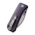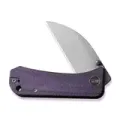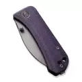 Рукоять состоит из стальных лайнеров, запрятанных под накладки, которые выполнены из Микарты. Это прочный и стабильный материал, который не боится воды, не гниёт и устойчив к другим агрессивным средам. Накладки приятны на ощупь и при намокании становятся ещё более цепкими. Так же впервые в семействе ножей Banter у ножа скруглены края накладок, что обеспечивает приятное и удобное удержание в руке. Фиолетовый цвет накладок отлично сочетается с тёмно-серым покрытием клинка Stonewash.