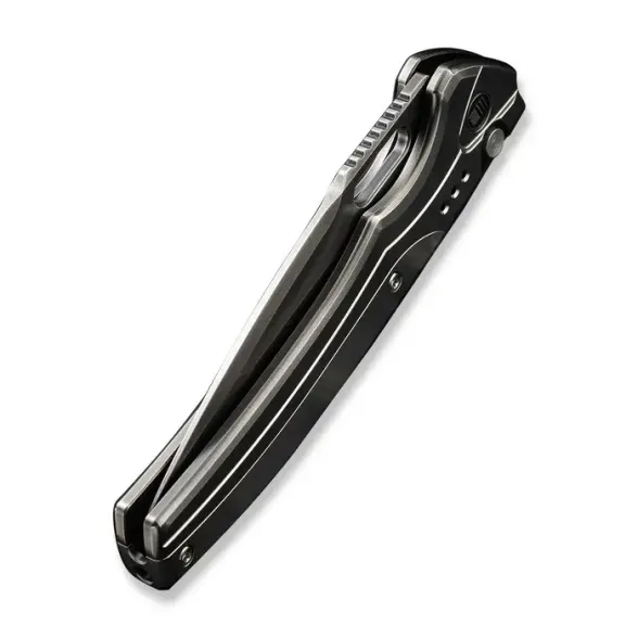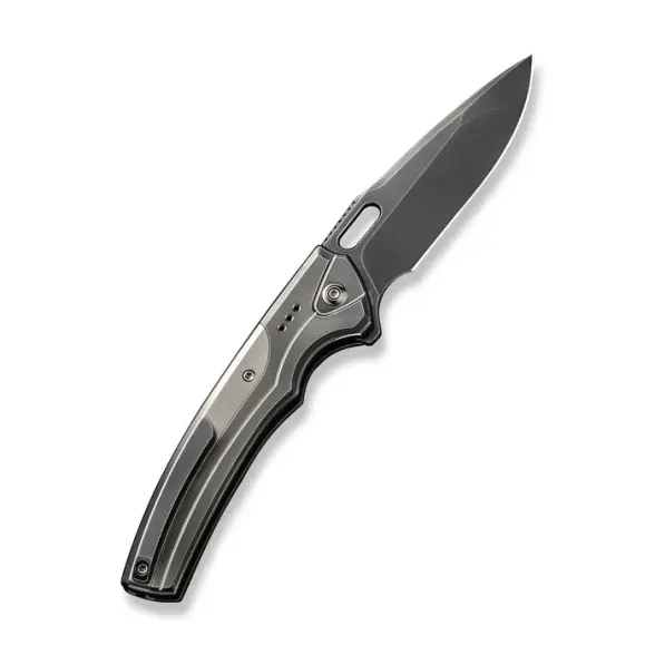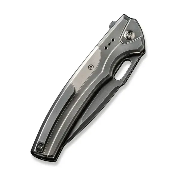 Рукоять изготовлена из титана - прочного, легкого и нержавеющего металла, который также не вызывает аллергии и не магнитится. Ее конструкция нетипична для складных ножей: две плашки соединяются благодаря интегральному бекспейсеру, что придает рукояти монолитное ощущение в руке и упрощает процесс сборки и разборки. Такое решение подчеркивает инновационный подход WE Knife к дизайну и производству ножей.