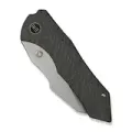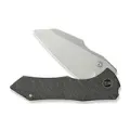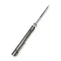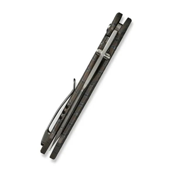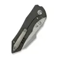 Рукоять ножа изготовлена из титана – прочного и лёгкого материала премиального класса. Её поверхность обработана вручную в технике Flamed Tiger Stripe с использованием газовой горелки, что придаёт уникальный внешний вид. Замок Frame-Lock обеспечивает высокий уровень надёжности и безопасности при использовании, делая этот нож функциональным и долговечным инструментом.
