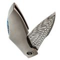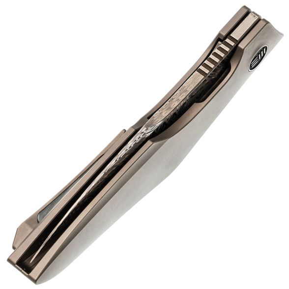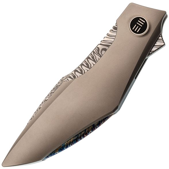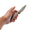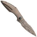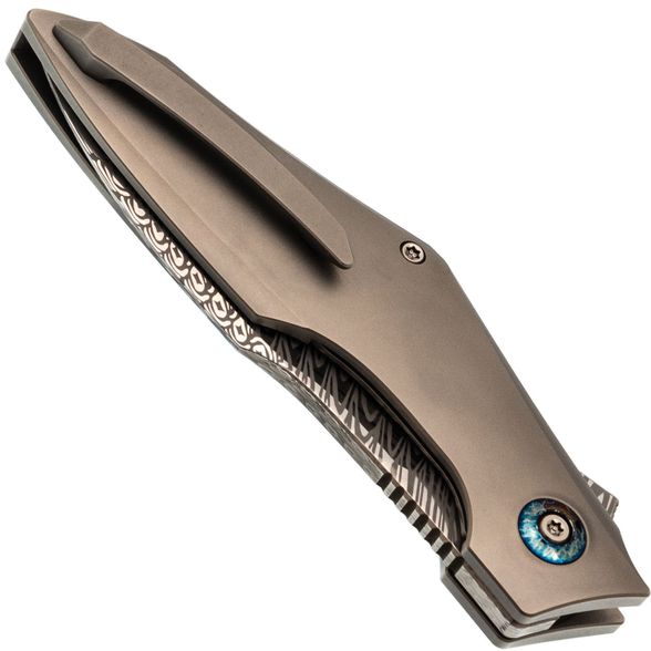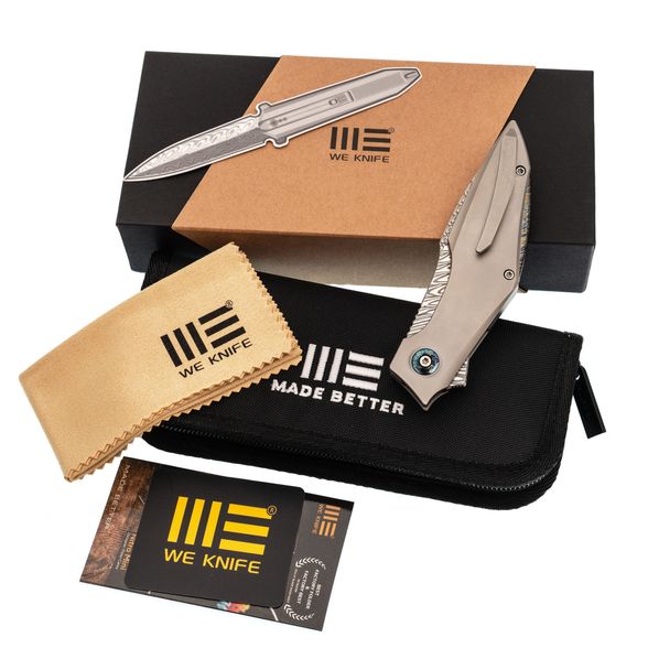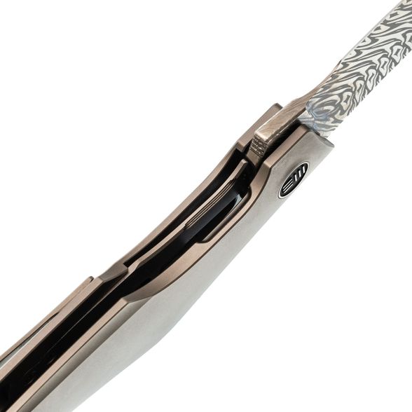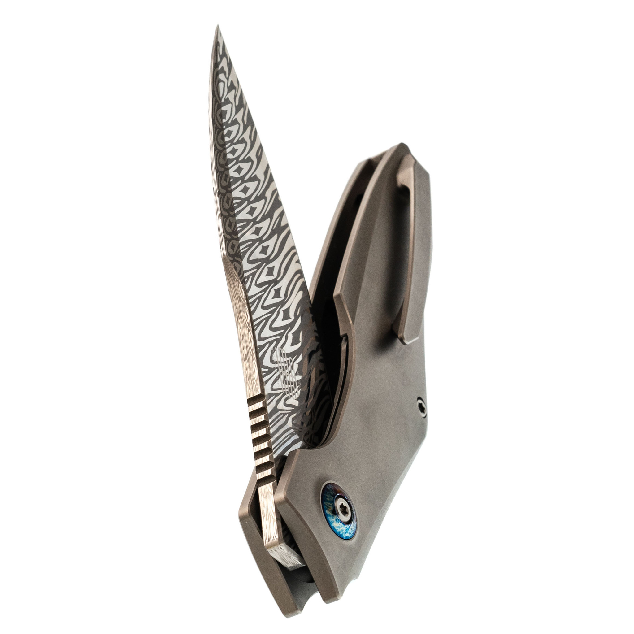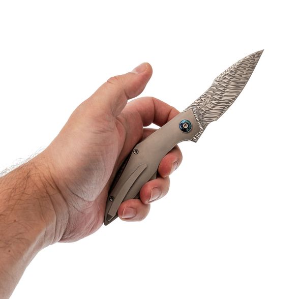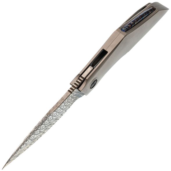 Складной нож Krait от WE Knife - среднеразмерный складной нож авторства Tashi Bharucha: узнаваемые плавные линии, необычная, но практичная форма и спокойная изящность. Имя перекликается со змейкой крайт - отсюда стремительный силуэт. В этой версии - клинок из Damasteel с узором Fafnir, серебристая титановая рукоять и аккуратные вставки из тимаскуса: получился удобный и эффектный EDC на каждый день.