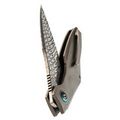 Универсальный Drop-Point с высокими прямыми спусками даёт чистый рез и уверенное строгание. На обухе - углубление с “гарпунной” линией, которое служит естественным упором для большого пальца и помогает контролировать клинок при работе. Открывание - низкопрофильный флиппер: в сложенном виде почти не заметен, а в работе - цепкий и удобный. Чойл у кромки облегчает тонкие задачи и делает заточку комфортнее.