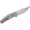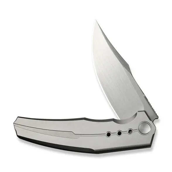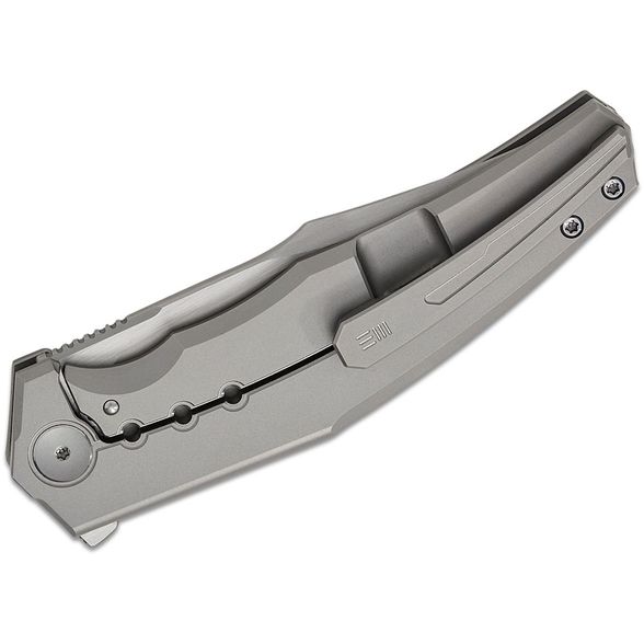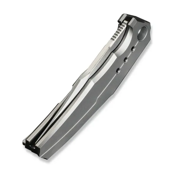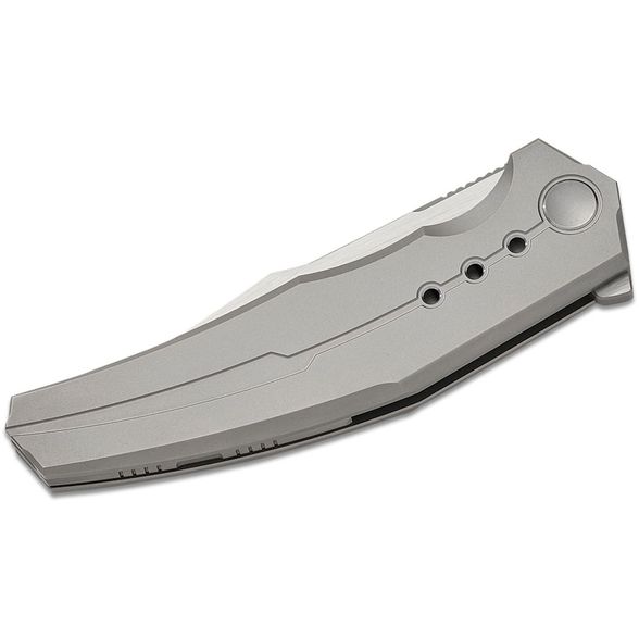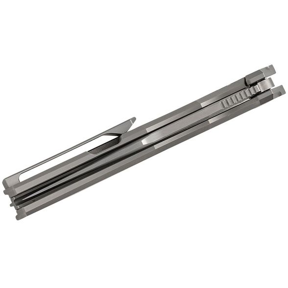 Рукоять из титана с анатомичной формой и выразительной фрезерованной линией, проходящей через обе стороны, создаёт узнаваемый внешний вид. На лицевой стороне - только аккуратно оформленный осевой винт, ничего лишнего. На оборотной стороне - цельнофрезерованная титановая клипса, идеально сочетающаяся с геометрией рукояти. Замок Frame-Lock гарантирует надёжную фиксацию и долговечность даже при интенсивном использовании.