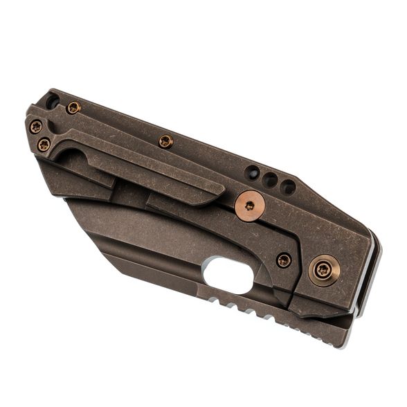 Нож оснащён титановой цельнофрезерованной клипсой для удобного ношения на кармане или ремне. Имеется темлячное отверстие.