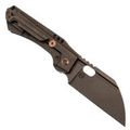 Клинок выполнен из премиальной порошковой стали CPM-S35VN. Она очень долго держит заточку, имеет агрессивный рез и отлично сопротивляется коррозии - отличная сталь для премиального высокопроизводительного ножа. Клинок выполнен в форме Sheep Foot, которая особенно удобна при при работе на поверхности, а опущенный кончик и прямая режущая кромка позволяют этому ножу стать грозой коробок, картона и упаковок.