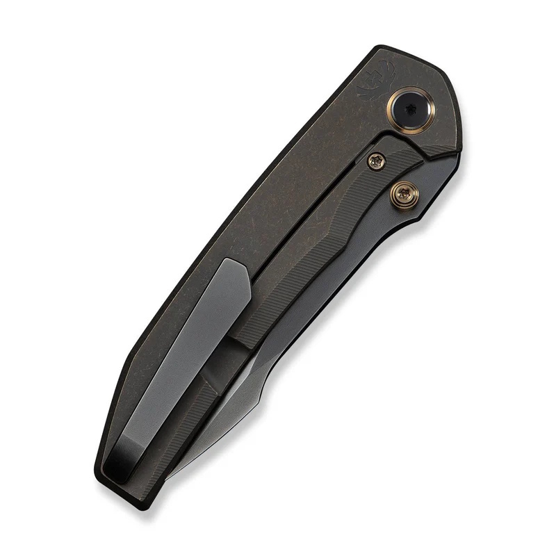 Рукоять выполнена из титана с бронзовой отделкой, что придает ножу не только солидный внешний вид, но и комфорт в использовании. Титан не только прочен, но и достаточно легок, что делает нож удобным для длительного использования. Замок Frame Lock надежно фиксирует клинок, обеспечивая безопасность при работе с ножом. Бронзовая рукоять не скользит в руке, давая уверенный и надежный хват.