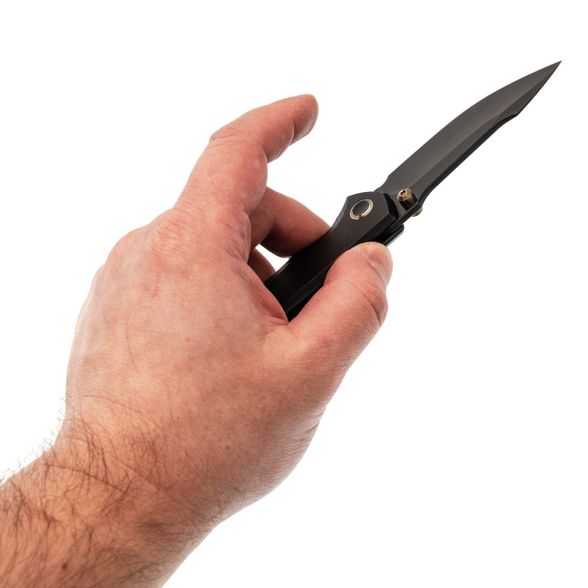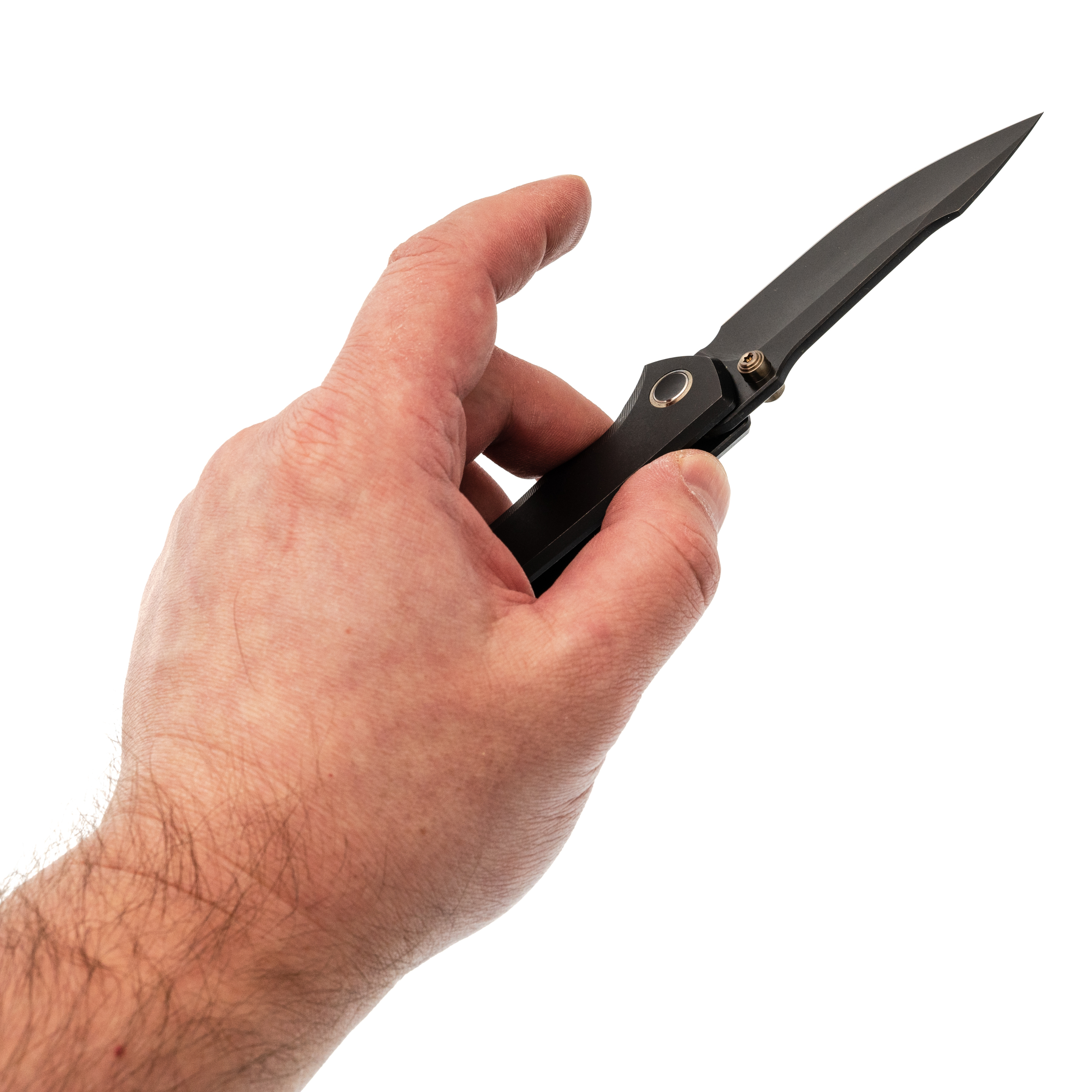 Титан (черный) - рукоять выполнена из титана, что придает ножу легкость и прочность. Титан отлично справляется с воздействием внешней среды и сохраняет свою форму и цвет в любых условиях.