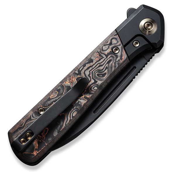 Складной нож We Knife Soothsayer, сталь CPM-20CV, рукоять карбон/титан - этот нож Soothsayer наверняка станет любимцем коллекционеров. Изготовленный из первоклассных материалов, нож отличается прочностью без ущерба для удобства удержания или веса. Сложная обработка и отделка превращают превосходную, прочную конструкцию в особенно красивый нож. Флиппер тонкий и не мешает дизайну. Механизм также очень плавный - керамический шарикоподшипник с сепаратором обеспечивает мягкое скольжение, что доставляет удовольствие при использовании. Острое лезвие drop point из стали CPM 20CV с абразивной обработкой. Низкопрофильная открывалка-флиппер, удобная в использовании. Титановая рукоять с черной саржевой вставкой из углеродного волокна.