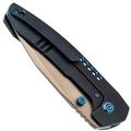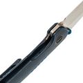 Клинок заявлен как Spear-Point, хотя на наш взгляд это больше похоже на Танто, и работать нож будет соответственно. Спуски у ножа комбинированные - на кончике они прямые, что даёт больше прочности кончику, а вогнутые на 2/3 основной части клинка дают более деликатную режущую кромку. Толщина обуха в 4 мм даёт ножу надёжность, а премиальная порошковая сталь CPM-20CV очень долго держит заточку, отлично сопротивляется коррозии и обладает высокой прочностью. Резюмируя - клинок мощный и способен хорошо справляться с тяжелыми нагрузками.