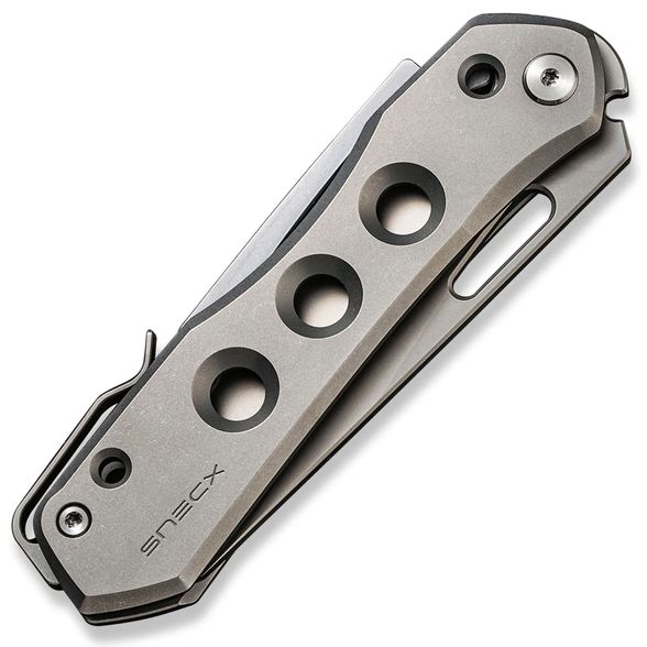 Складной нож WE Knife Vision R, сталь CPM-20CV, рукоять Titanium - это уникальный нож с очень уникальным замком. Он не похож ни на один другой нож, представленный на рынке, и благодаря нестандартному мышлению является на 100% амбидекстром. В типичной моде SNECX, инновационные механизмы и дизайн делают отличительный нож, на который вы можете положиться. И кто знает? Возможно, в будущем нас ждет множество EDC-ножей, похожих на Vision R! Особенности: обратный клинок танто из CPM 20CV с дробеструйной обработкой; отверстие под большой палец для быстрого открывания; механизм Superlock для надежной фиксации.