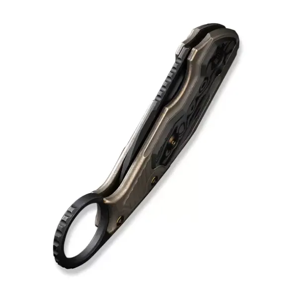 Рукоять Yardbird выполнена из титана и карбона - двух премиальных, прочных и легких материалов. Ее удобная форма с изогнутостью и солидной подпальцевой выемкой обеспечивает комфортное использование, а чойл позволяет выполнять более точные работы. Керамбитное кольцо для обратного хвата добавляет ножу дополнительную функциональность и удобство, а расположение клипсы на спинке рукояти позволяет избежать наминания руки при работе и обеспечивает удобное ношение на брючных карманах. Замок Button-Lock размещён по левую руку, тем не менее пользовать ножом правой рукой тоже будет удобно, пускай и несколько непривычно.