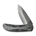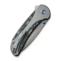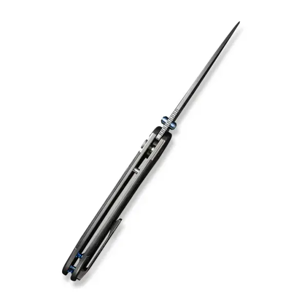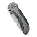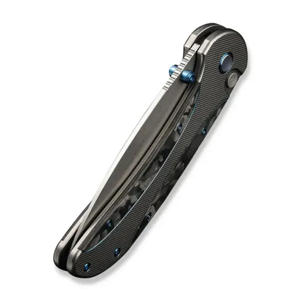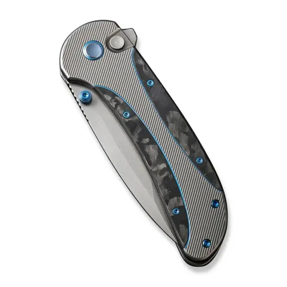 Рукоять имеет плавный изгиб и большую длину, что обеспечивает комфортный хват для любой руки. Она изготовлена из титана с боковыми накладками из карбона - материалов, широко используемых в премиум-классе за их легкость и прочность. Механика модели также на высоте: керамические подшипники создают плавное и легкое складывание клинка, который, благодаря системе Button-Lock, буквально сам складывается под собственным весом при нажатии на кнопку замка.