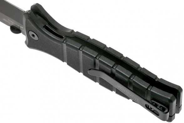 Симметричная форма spearpoint отсылает к классическим моделям времён войны, но здесь она выполнена в складном исполнении. Односторонняя заточка делает режущую кромку надёжной и удобной для повседневных задач, а плавное открывание с помощью диска под большой палец добавляет скорости и комфорта в использовании.