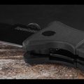 Сталь 8Cr13MoV - устойчива к износу, легко точится и отлично держит режущую кромку. Покрытие чёрным оксидом защищает металл от коррозии и придаёт сдержанный вид.