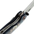 Для безопасного ношения нож оснащен надежным замком Liner-Lock, который удерживает клинок в открытом положении, гарантируя безопасность и уверенность при работе. Замок легко активируется и обеспечивает достаточную прочность для большинства повседневных задач.