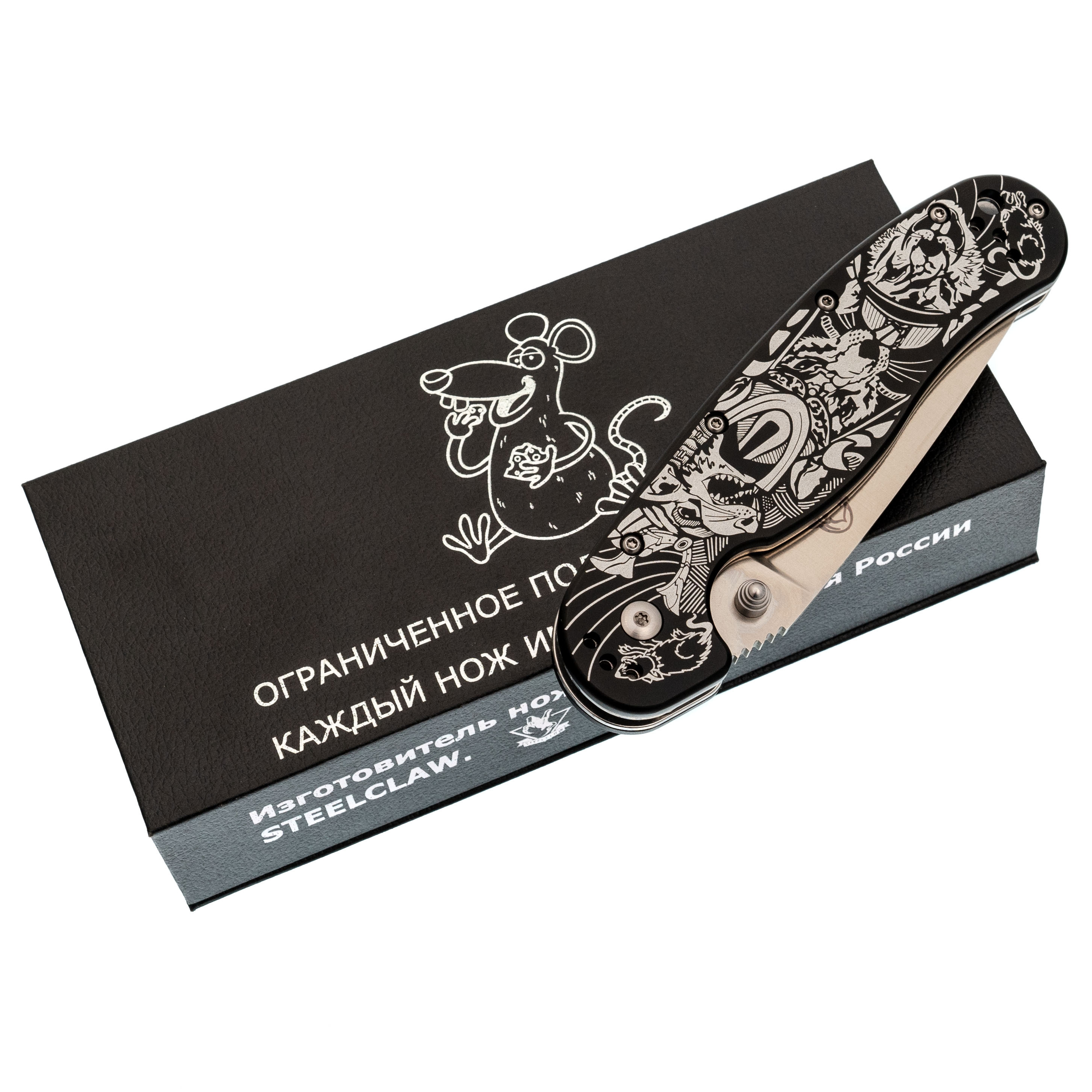 "Крыса" от Steelclaw - это складной инструмент, который ориентирован на максимальную практическую ценность. Этот нож с лимитированной серией придерживается простых линий и компактных пропорций, гарантируя удобство и надёжность. Вдохновлённый культовой моделью Rat 1, он превращает классический дизайн в лёгкую, но мощную рабочую модель. С ним удобно как в повседневной жизни, так и на активных вылазках.