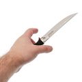 Лезвие этого ножа изготовлено из AUS-8 нержавеющей стали, известной своей высокой ударной вязкостью, прочностью и способностью сохранять остроту в долгосрочной перспективе. Геометрия лезвия разработана по принципу Upswept-Point, что обеспечивает эффективное рубящее и режущее действие. Такая конструкция гарантирует стабильную работу лезвия даже при интенсивном использовании в экстремальных условиях, делая его идеальным для задач, связанных с разными типами резки. Надежность и долговечность стали подтверждаются испытаниями в сложных условиях эксплуатации.