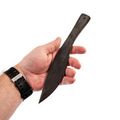 Спортивные ножи нужны для такой дисциплины как "Спортивное метание ножа". За счет своих конструктивных особенностей такой нож будет эффективен только в этом ремесле - малая твёрдость не позволит ему хоть как-то держать заточку зато позволит не сколоться и не треснуть от нагрузок, которые нож испытывает при попадании в мишень. Большая толщина тоже нужна для надёжности. Баланс смещён в сторону кончика