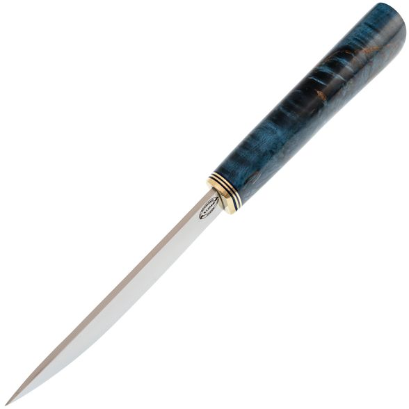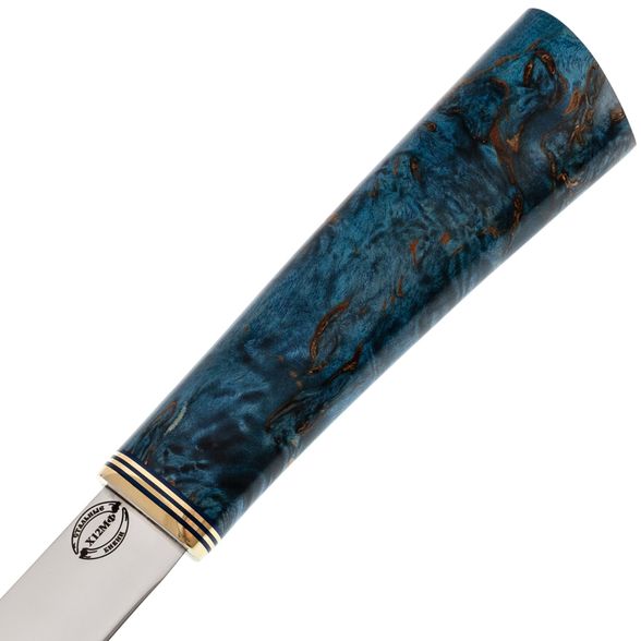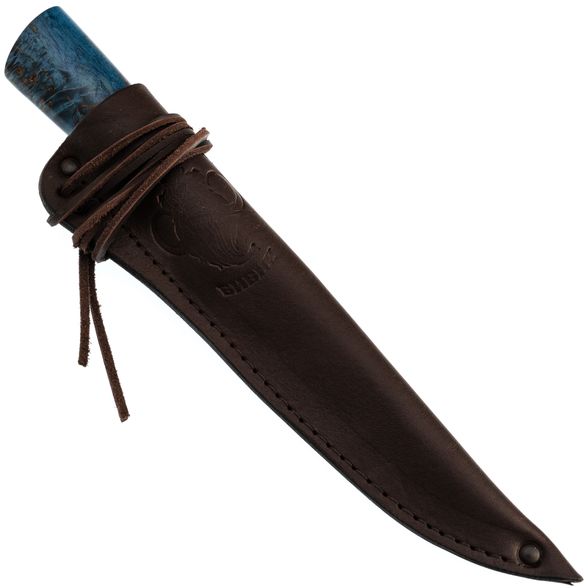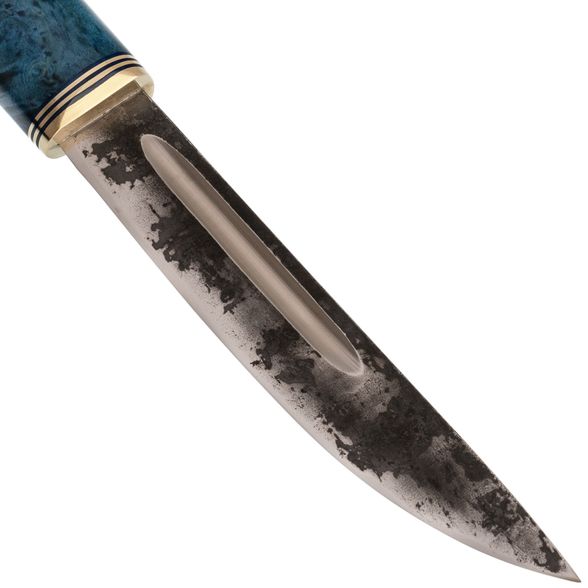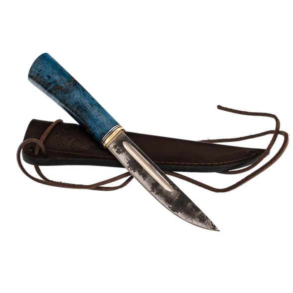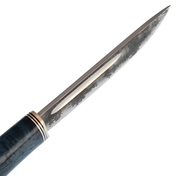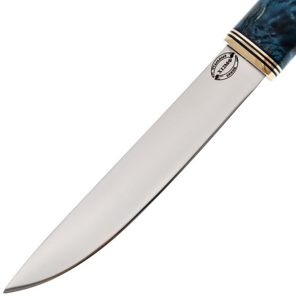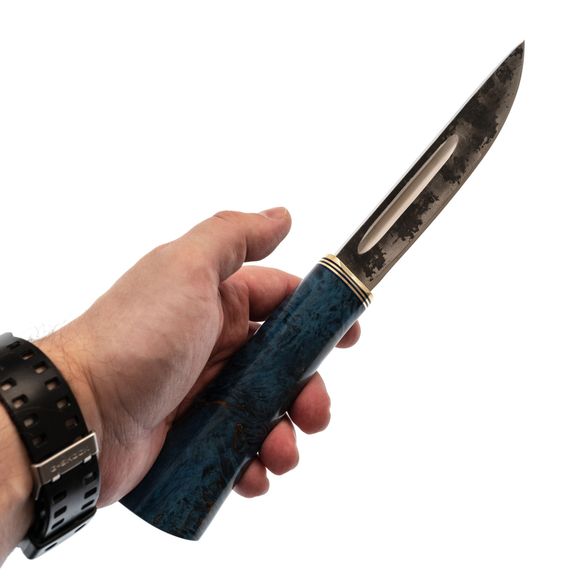 Средний Северный нож с элементами ковки, сталь Х12МФ, карельская береза синяя, латунь