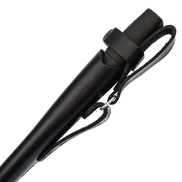 Модель комплектуется ножнами из натуральной кожи - традиционным и долговечным решением для комфортного ношения. Жёсткая форма обеспечивает дополнительную защиту режущей части и исключает случайное выпадение инструмента. Классический дизайн ножен органично сочетается с общим обликом модели и подчёркивает её принадлежность к линейке туристических и охотничьих атрибутов.