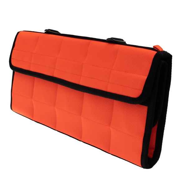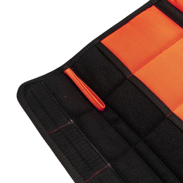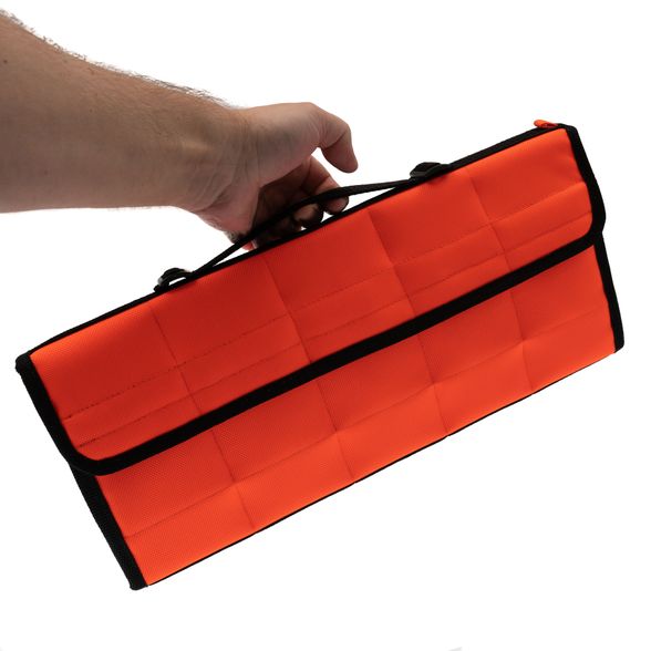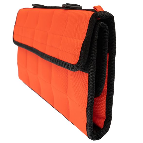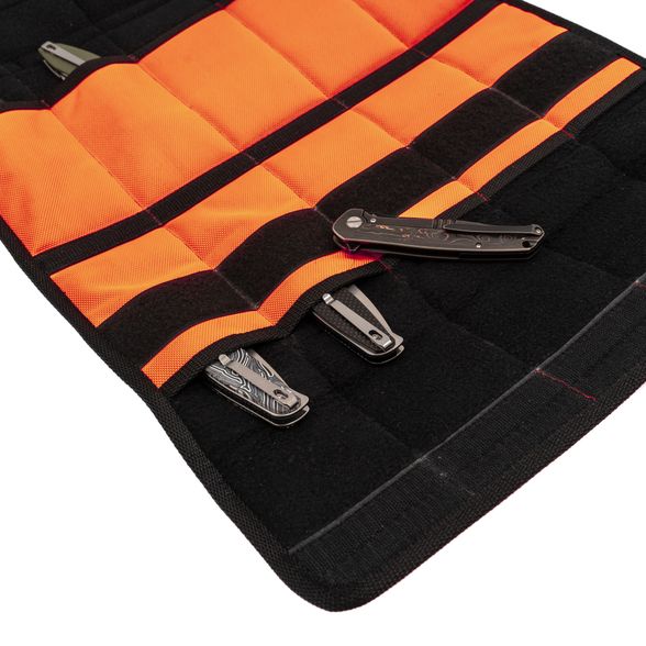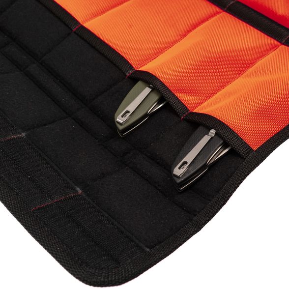 Сумка для 10 ножей New Level, оранжевая, — отличный выбор для тех, кто ценит свою коллекцию складных ножей. Внутренние карманы размером 75x130 мм оснащены толстым флисовым слоем, который не только защищает лезвия от царапин, но и заботится о тепле ваших ножей. Ведь, согласитесь, дорогие ножи не должны мерзнуть в холодную погоду!
