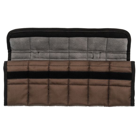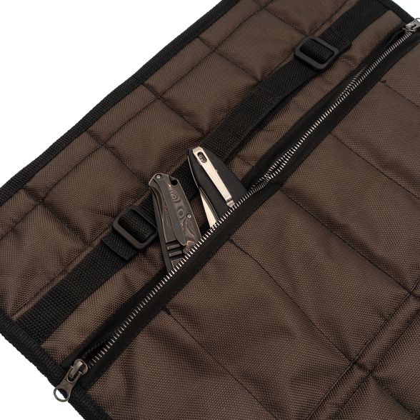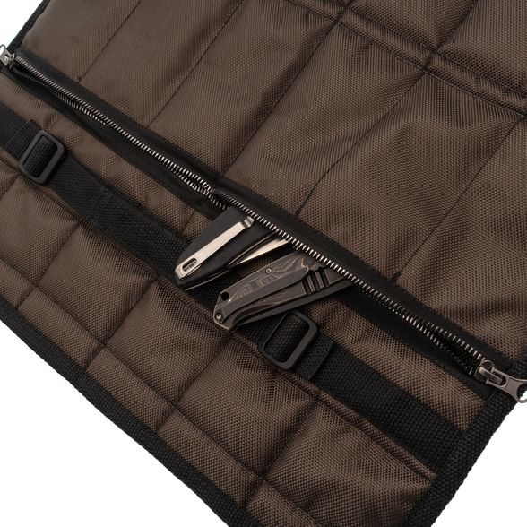Сумка KTB рассчитана на безопасное хранение до 12 складных ножей стандартных размеров или компактных фиксированных моделей. Это оптимальный выбор для коллекционеров и энтузиастов, которым важно держать коллекцию в порядке и быстро находить нужный экземпляр. Формат внутренней компоновки позволяет аккуратно разместить каждый нож в отдельном отделении, исключая их контакт между собой.