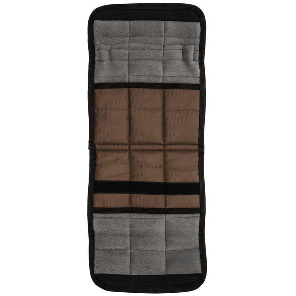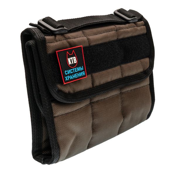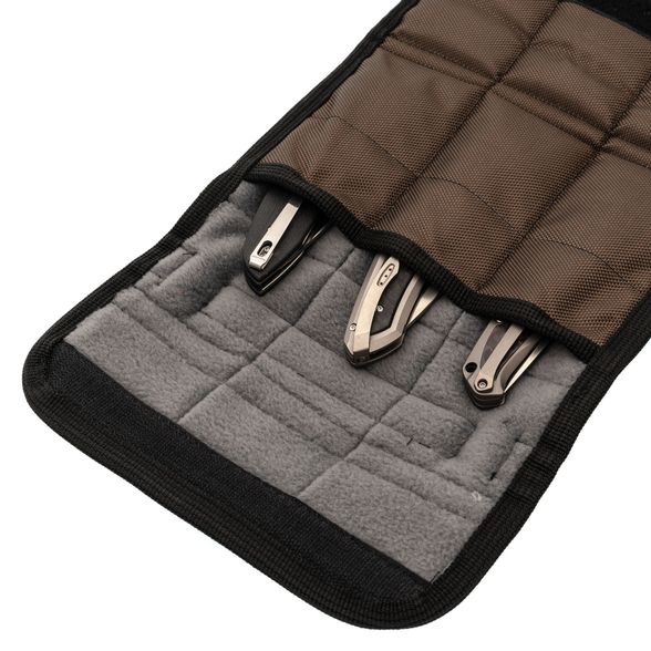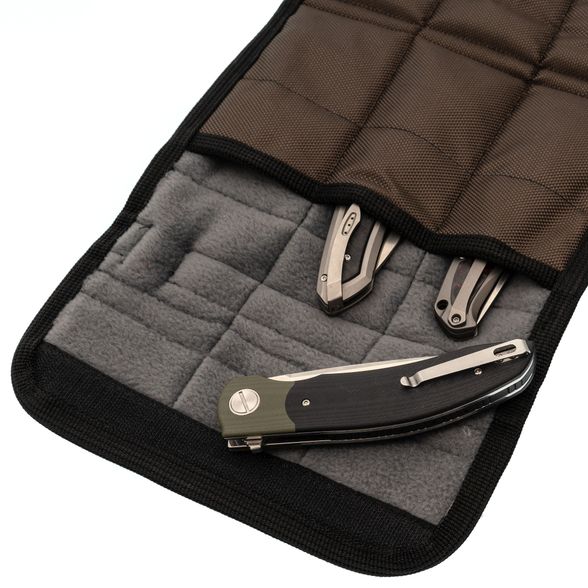 Сумка в коричневом цвете подойдёт тем, кто ценит сдержанную эстетику и практичность. Она надёжно вмещает 6 складных ножей или небольших фиксированных - для хранения в мастерской, гараже или в поездках.