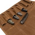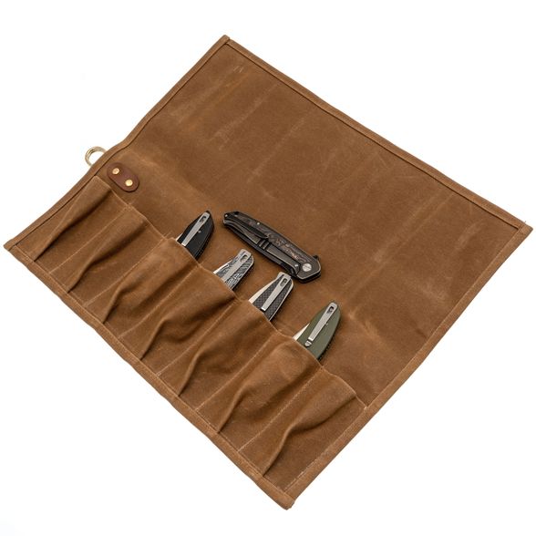 Сумка оснащена 7 карманами для складных ножей размером 55×115 мм, что позволяет удобно и надежно разместить инструменты. Ремень из экокожи, с помощью которого сумка скручивается и фиксируется, регулируется, обеспечивая надежную и компактную упаковку.