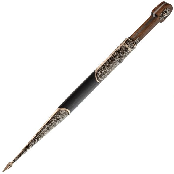 Представляем вам сувенирный кинжал кавказских казачьих войск образца 1904 года - идеальный подарок для исторических энтузиастов и любителей коллекционирования. Этот кинжал является точной репликой оригинала, созданной с максимальной детализацией и вниманием к деталям. Он отлично передает атмосферу и дух того времени, когда кавказские казачьи войска играли важную роль в истории России. Кинжал имеет прекрасную отделку, сделанную из высококачественных материалов. Рукоять выполнена из дерева с резными узорами, а клинок из нержавеющей стали с гравировкой, отражающей традиции и символику казачества. Этот сувенирный кинжал не только является отличным подарком, но и прекрасно украсит интерьер вашей комнаты. Он станет ярким акцентом и добавит атмосферы истории и традиций в ваш дом. Не упустите возможность приобрести этот уникальный сувенирный кинжал кавказских казачьих войск образца 1904 года и порадуйте себя или своих близких историческим подарком, который будет радовать глаза и вызывать интерес на протяжении многих лет.