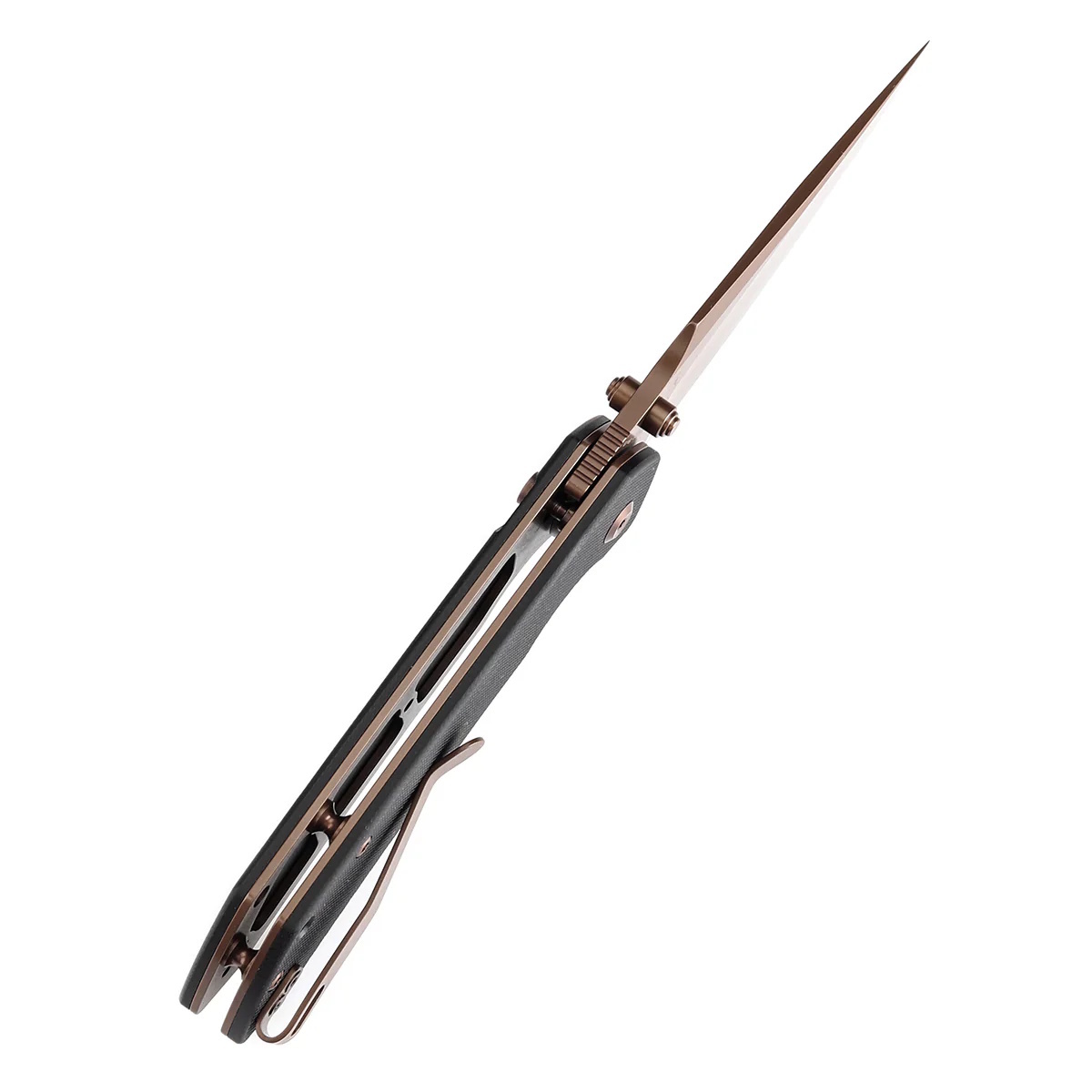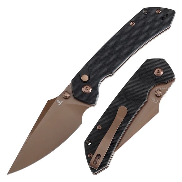Режущая часть выполнена из стали 14C28N с декоративной обработкой Rose Gold, которая придаёт изделию выразительный внешний вид и защищает поверхность от мелких следов эксплуатации. Обух толщиной 3.5 мм обеспечивает необходимую жёсткость, а профиль Harpoon способствует точному контролю при работе. Геометрия клинка сбалансирована для универсального применения в повседневных задачах.