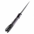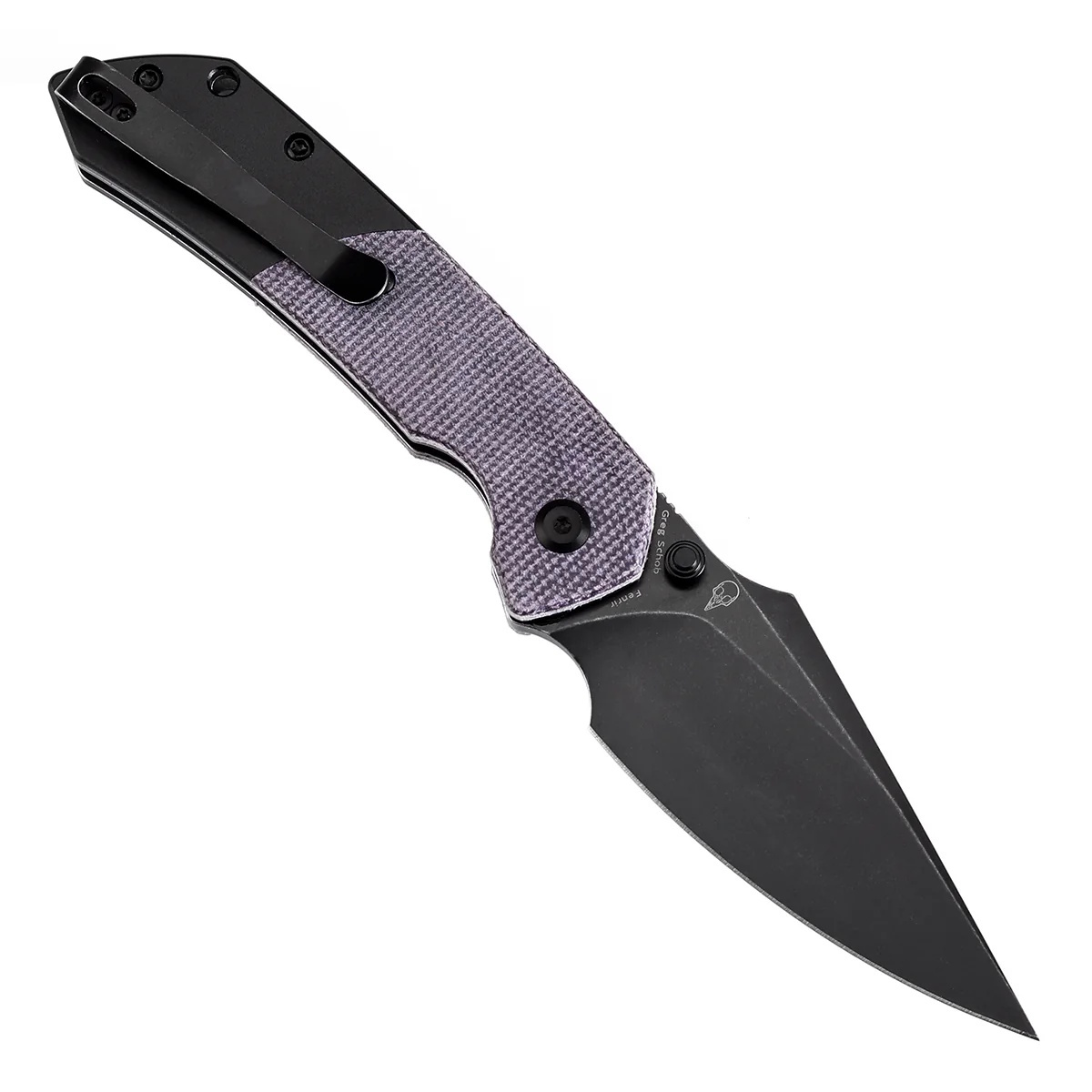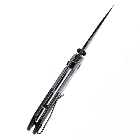 Конструкция рукояти сочетает фиолетовые накладки из микарты с чёрными алюминиевыми элементами, создавая визуально выразительный и функциональный контраст. Текстурированная поверхность обеспечивает стабильный хват даже при повышенной влажности, а форма рукояти способствует естественному положению в ладони. Эргономика продумана до деталей: инструмент удобно лежит в руке, не вызывая усталости при длительном использовании. Сочетание материалов и цветовых акцентов делает модель практичной и визуально сбалансированной для повседневного применения.