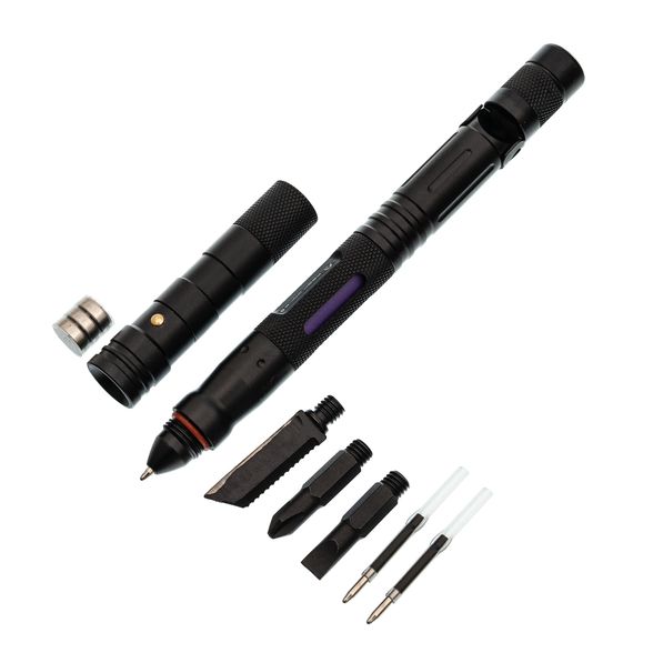 Алюминиевый корпус придаёт инструменту долговечность, а продуманная форма обеспечивает комфортное удержание в руке. Клипса позволяет носить его как ручку - на кармане, рюкзаке или ремне, делая доступ к функциям быстрым и удобным.