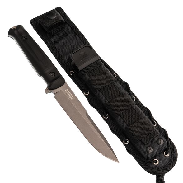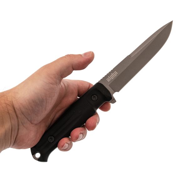 Нож Alpha D2 TW (GrayStoneWash, Черная рукоять, Black ножны).