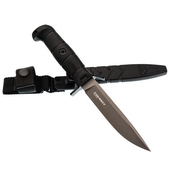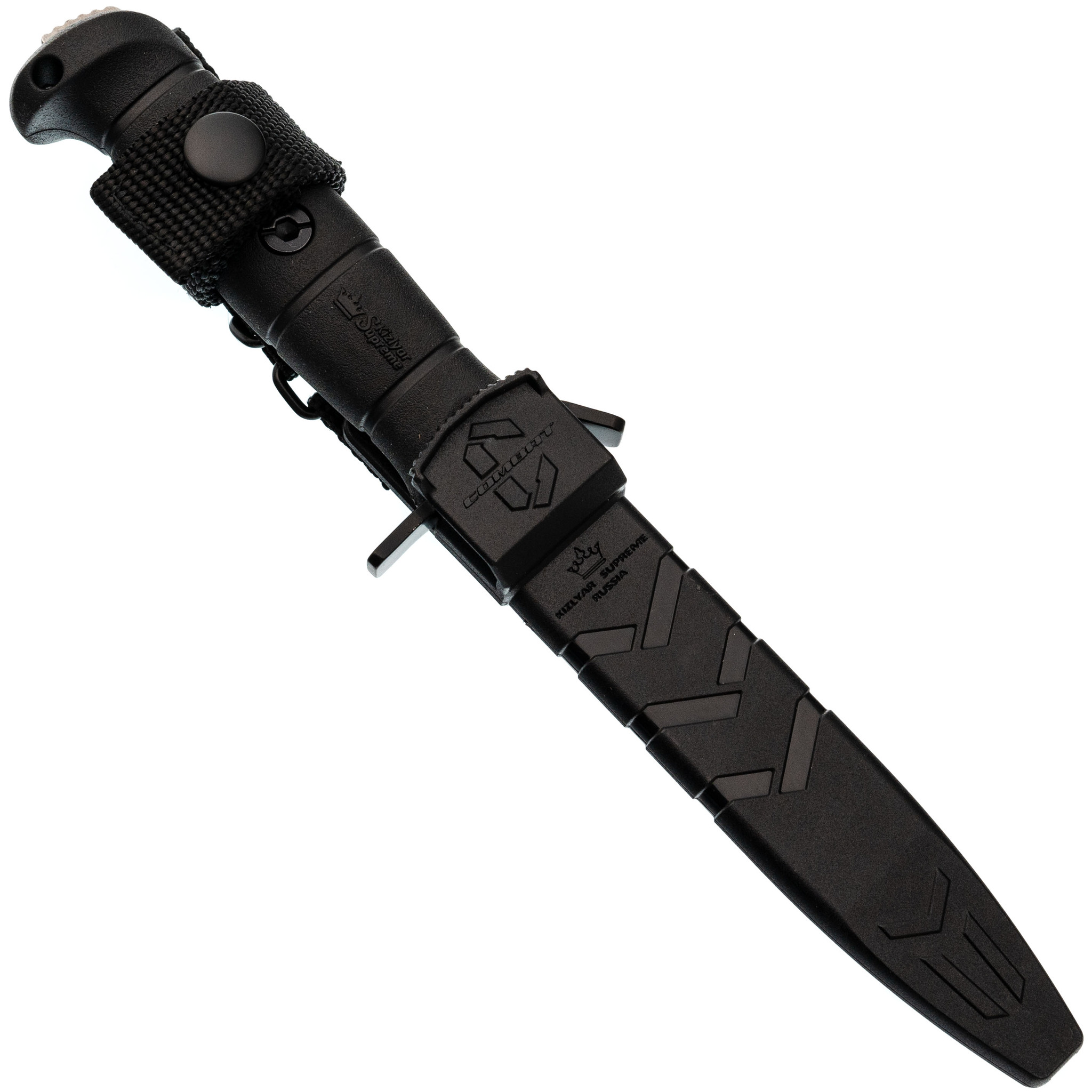 Жёсткий пластиковый материал ножен рассчитан на надёжную фиксацию. Они легко интегрируются в систему MOLLE, а специальный замок удерживает клинок даже при перевёрнутом ношении. Дополнительная фиксация и быстросъёмный подвес обеспечивают комфорт и безопасность при ежедневном использовании.
