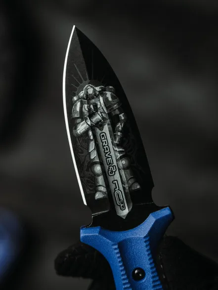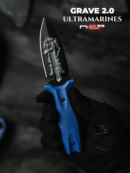 Grave от N.C.Custom - компактный фиксированный нож с узнаваемым кинжальным силуэтом и ярким тематическим оформлением в стиле Ultramarines. Лёгкий, удобный в ношении и понятный в работе инструмент, который подойдёт для повседневных задач и поездок на природу.