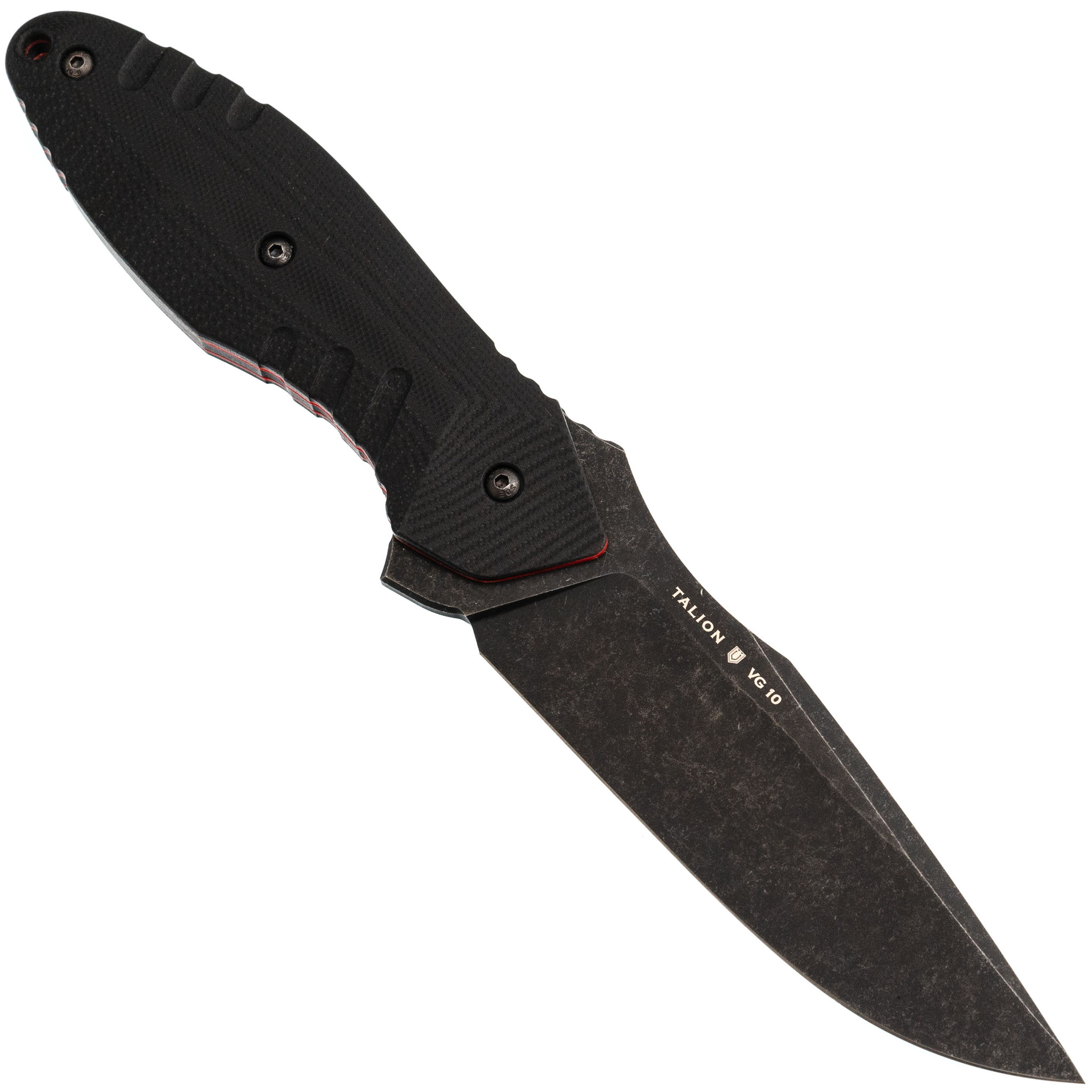 Клинок выполнен из стали VG-10, известной своей износостойкостью и коррозионной стойкостью. Нож имеет покрытие Black Stonewash, которое дополнительно защищает металл от воздействия влаги и снижает блики. Форма Drop-Point и высокие прямые спуски обеспечивают хорошее проникновение в материал, эффективное резание и строгание. Такая геометрия делает нож универсальным для различных работ.