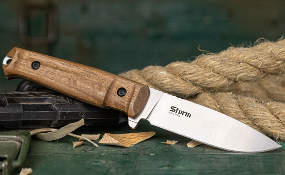 Изначально меня смущала форма рукояти с её подпальцевой выемкой. Но стоило взять нож в руки, как всё встало на свои места. Рукоять очень удобная, с запасом даже для мой немаленькой ладони, в руку легла прекрасно. Ножны добротные, нож сидит в них крепко, не вываливается. Заводская заточка хорошая, режет бумагу на весу. Ножом доволен!