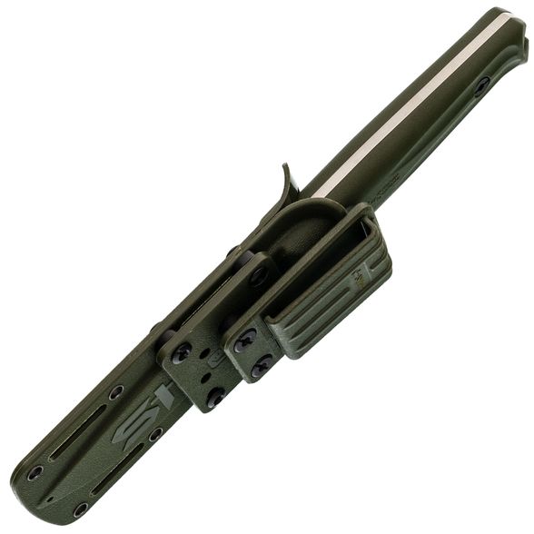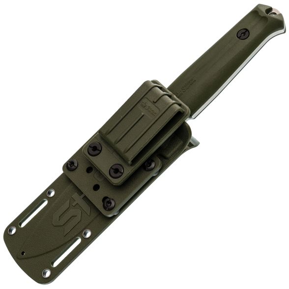 Ножны изготовлены из пластика, что обеспечивает их прочность и долговечность. Они надежно удерживают нож, даже если он вставлен вниз рукоятью. Пластиковые ножны имеют прорези, позволяющие удобно крепить нож к снаряжению или ремню, что является важным преимуществом для тактических и туристических задач. Такое крепление позволяет быстро достать нож в случае необходимости.