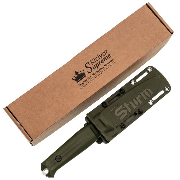 Kizlyar Supreme Sturm - это универсальный тактический нож среднего размера, который также подойдет для туризма и различных полевых задач. Нож хорошо сбалансирован и продуман до мелочей, обеспечивая удобство и эффективность в использовании.