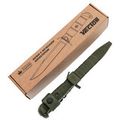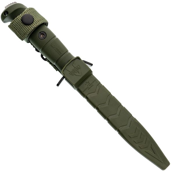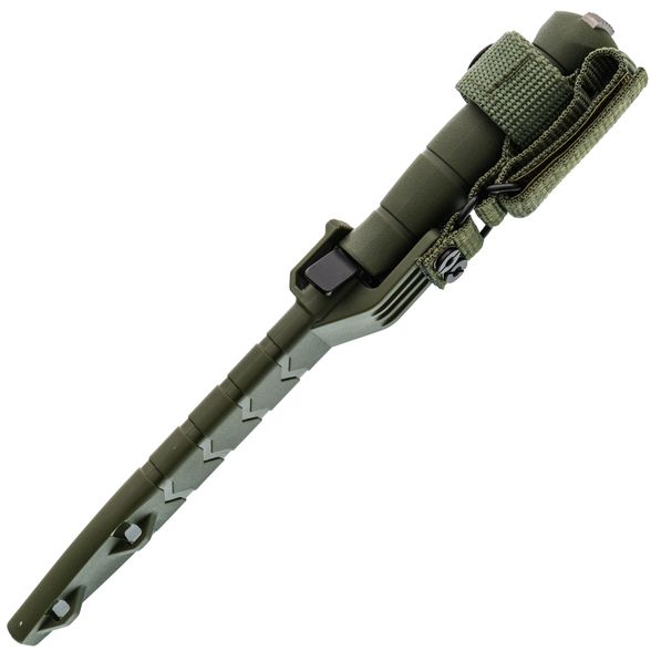 Для хранения и транспортировки предусмотрены прочные пластиковые ножны, которые фиксируют инструмент надёжно, даже при ношении рукоятью вниз. Специальный хлястик дополнительно удерживает изделие. Благодаря узкому профилю ножны легко интегрируются в единственную ячейку Molle, что особенно удобно для тактической экипировки. Материал ножен не боится ударов и перепадов температур, гарантируя безопасность при любых условиях.