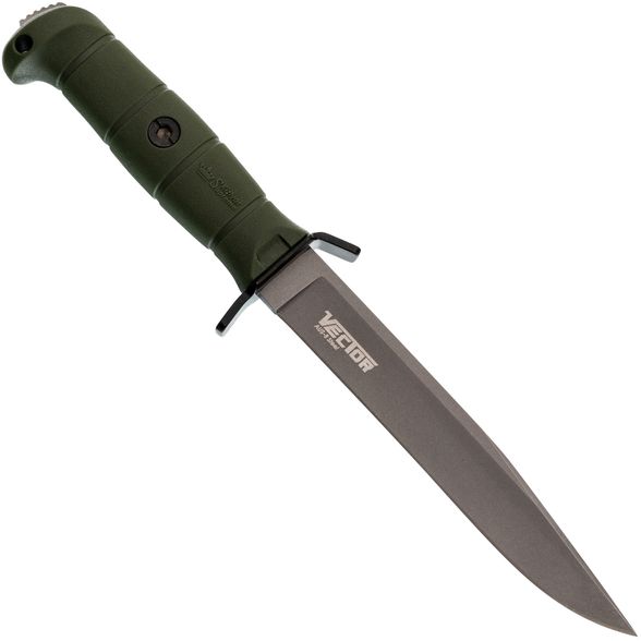 Клинок Vector выделяется не только классическим профилем Clip-Point, но и внушительной толщиной - 5,7 мм. Благодаря этому инструмент выдерживает экстремальные нагрузки, подходит для самых разных задач: от реза до силовой работы. Высокие вогнутые спуски обеспечивают уверенное проникновение в материал, а серое матовое покрытие предотвращает блики и дополнительно защищает сталь от воздействия среды.