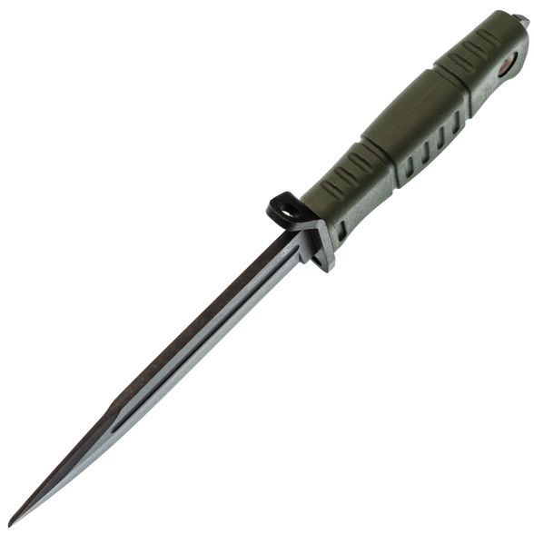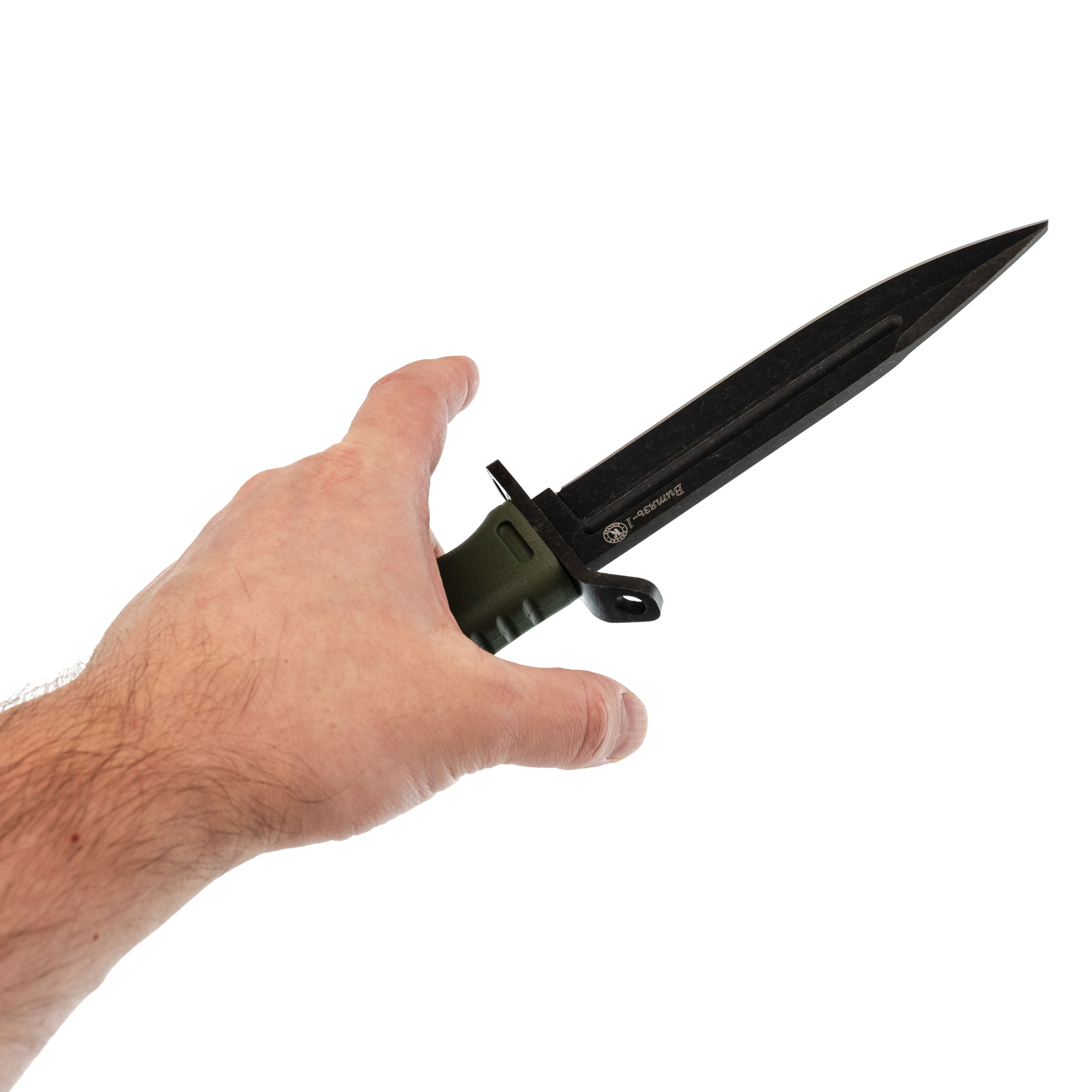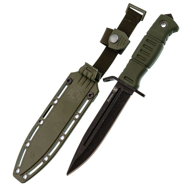 Кизляр ПП "Витязь-1" - крупный фикс с характером армейского штыка, но с гражданским статусом: по параметрам не подпадает под ограничения по ХО благодаря аккуратно спиленному кончику. Длинный и массивный клинок, сквозной монтаж и выступающий хвостовик делают его надёжным помощником для задач, где обычные туристические ножи сдаются раньше времени.